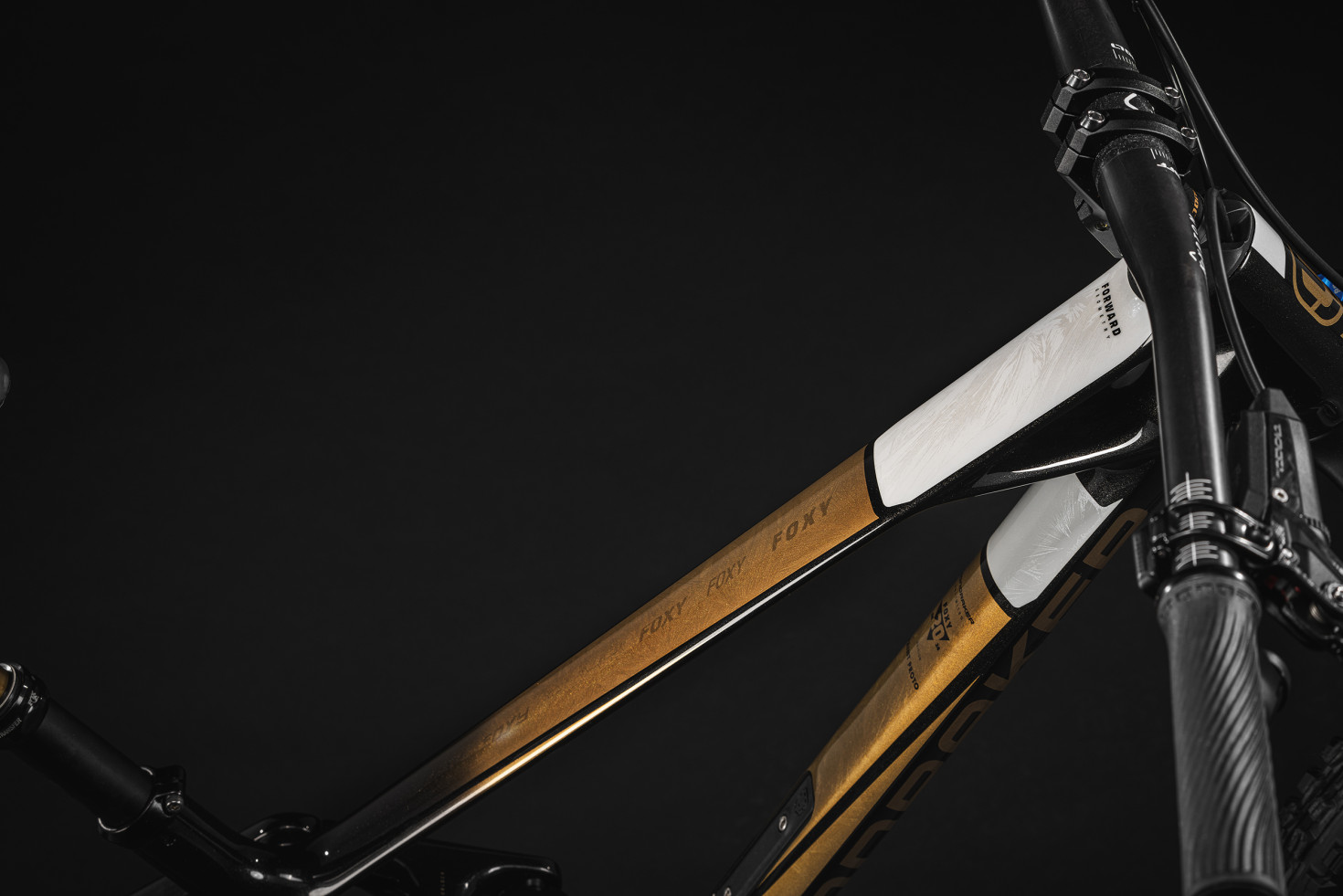 FOXY 20TH anniversary custom paint Foxy 29 Stealth Air full Carbon, Zero Suspension System, 150mm travel, Forward Geometry, Carbon Monoblock upper link, Boost 12x148mm rear axle, tapered head tube, 73mm BSA bottom bracket, dedicated 1x drivetrain design, HHG internal cable routing, Enduro MAX sealed bearings, shock mudguard, ISCG 05, custom frame protectors.