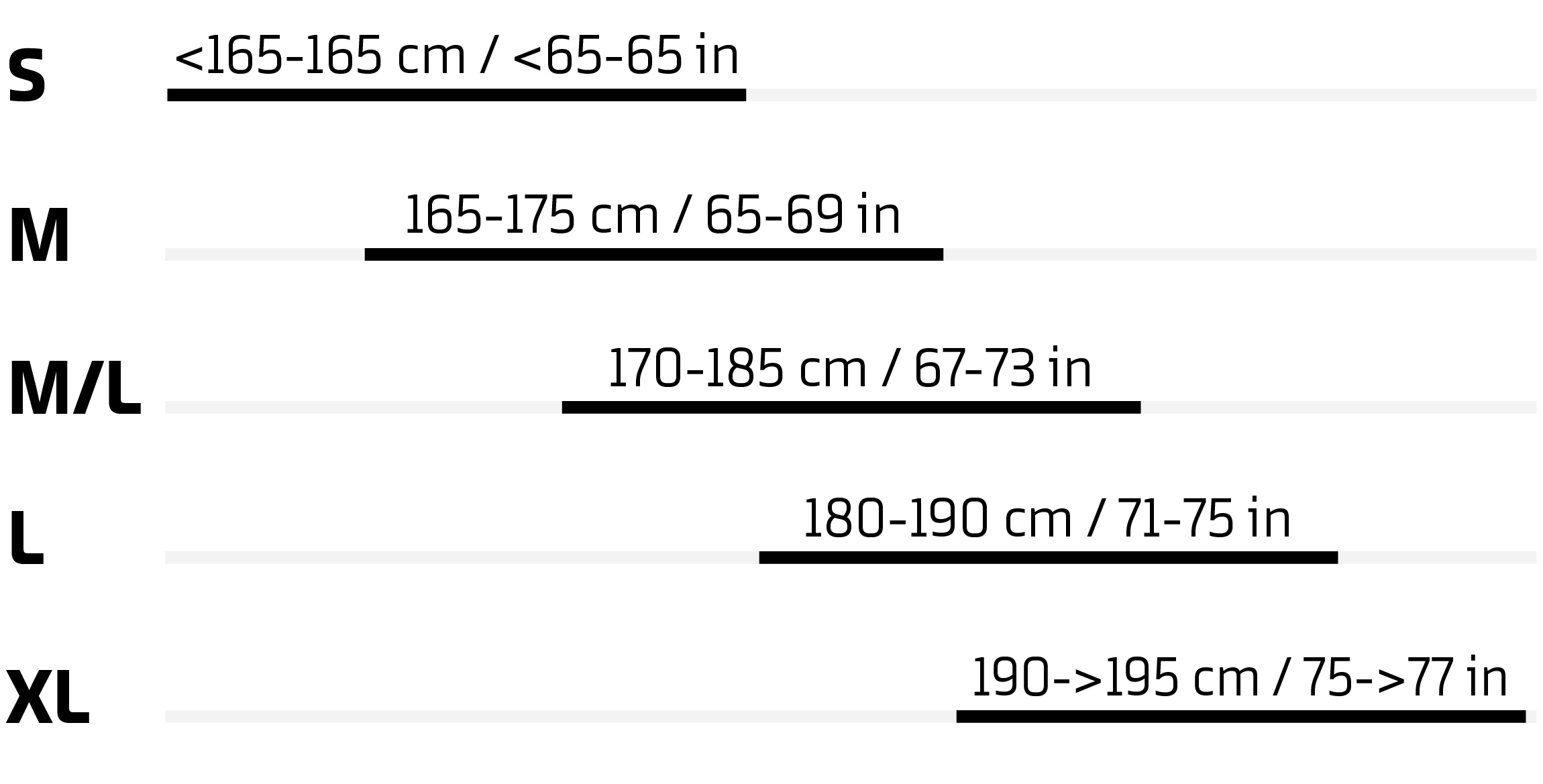 S: 410mm / M: 450mm / ML: 480mm / L: 510mm / XL: 540mm