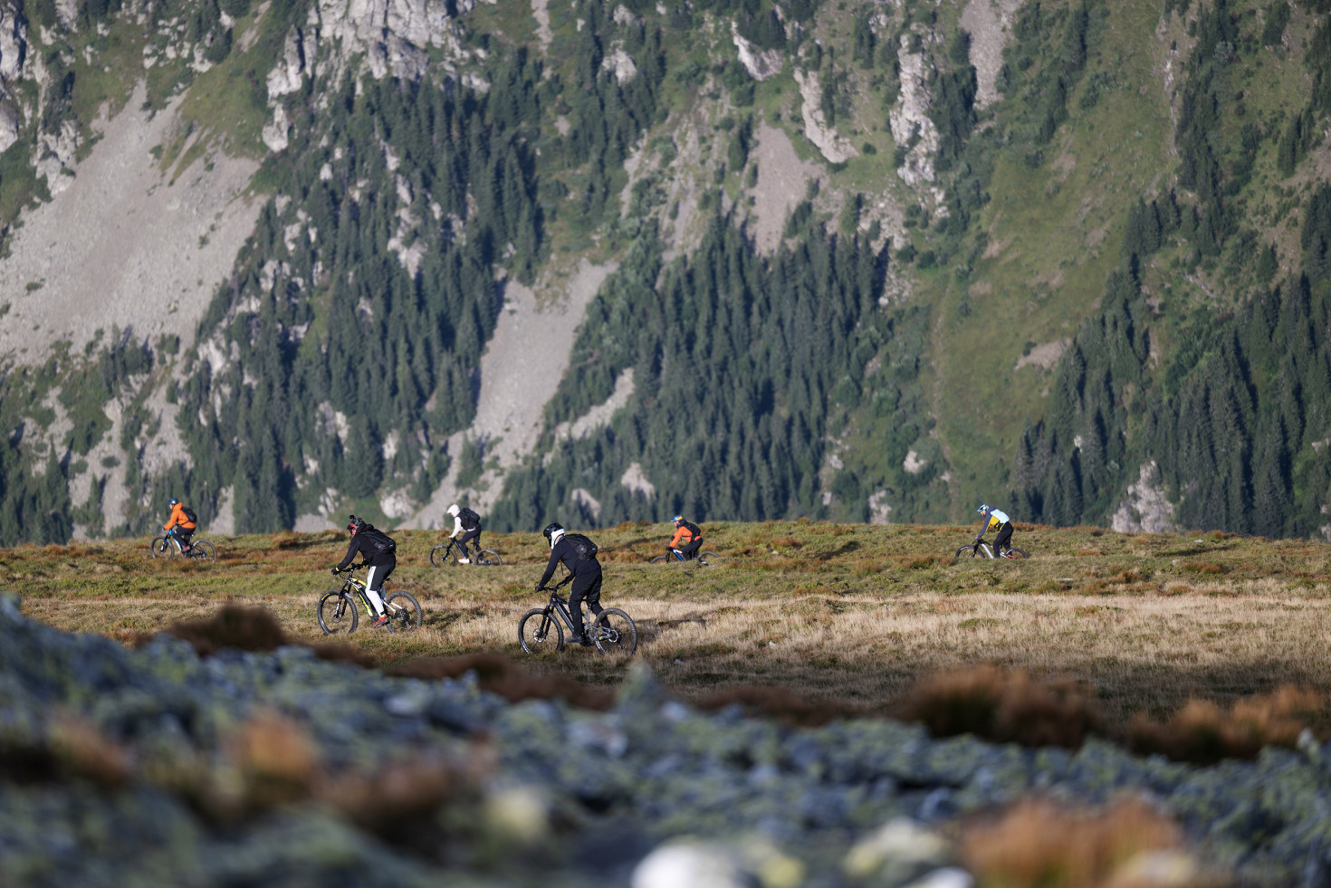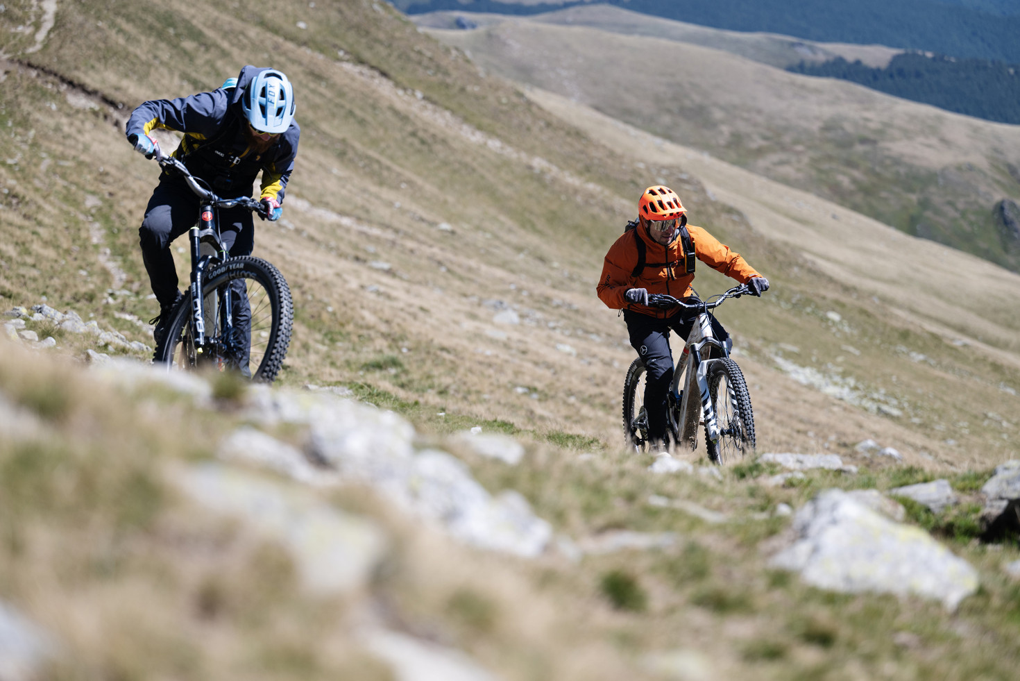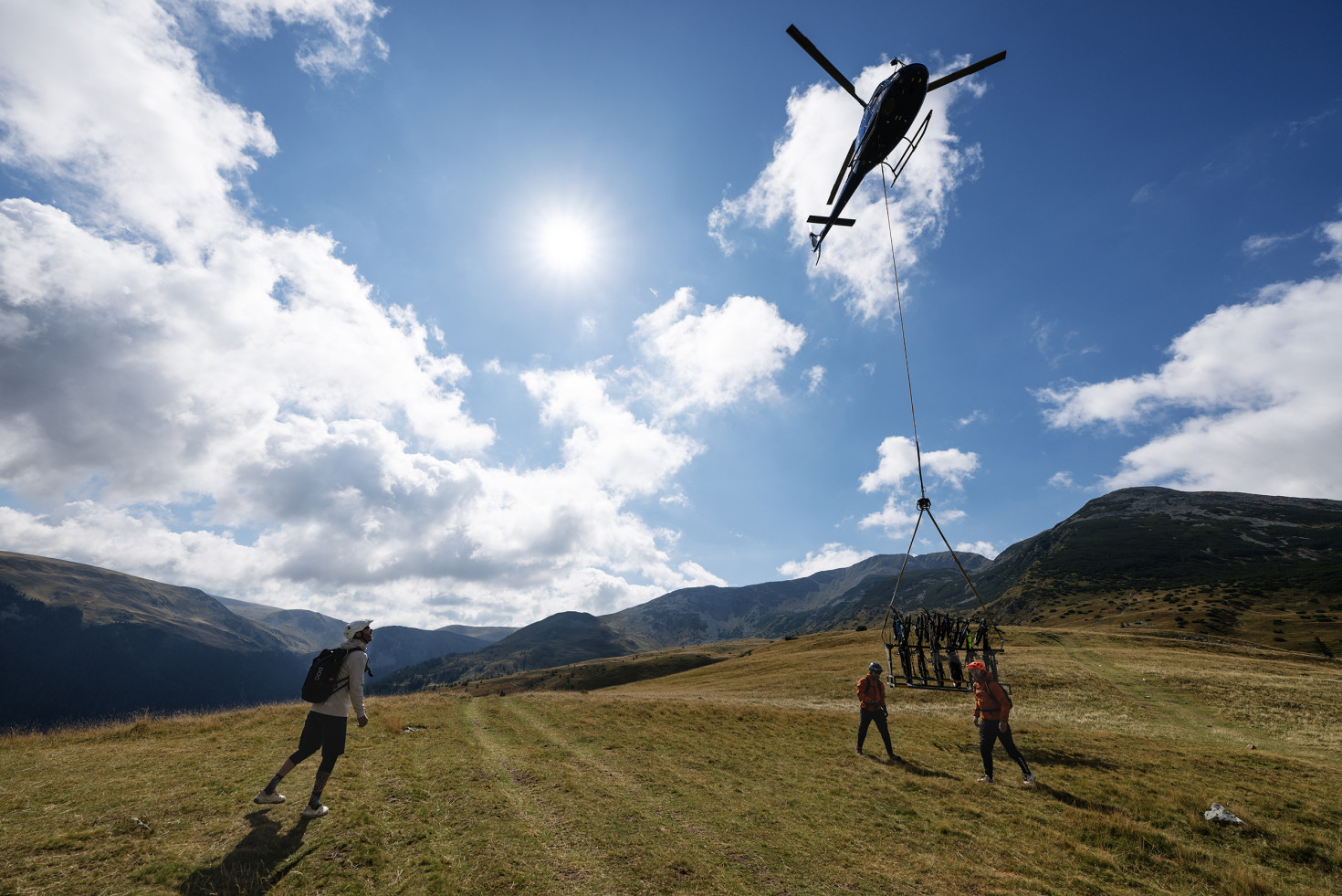 El cielo estaba despejado, y escuchábamos el rumor intenso de las hélices del helicóptero justo fuera del chalet, listas para llevarnos directamente al pico Țarcu. Lo que siguió fue una combinación perfecta de fluidez, descensos técnicos y subidas empinadas. Un terreno que significaba un reto total y nos hacía mejorar al mismo tiempo.