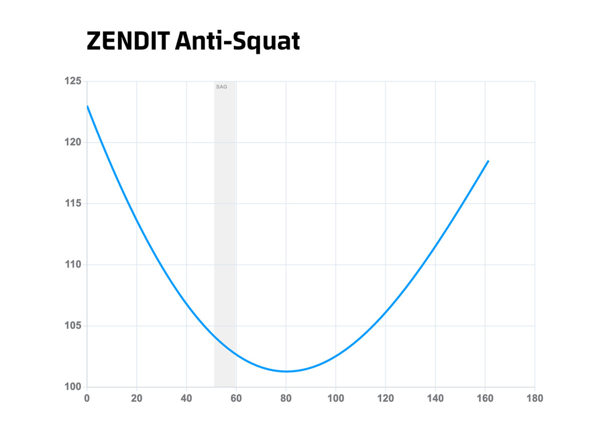 ZENDIT anti-squat at sag is approx 105%, ideal for the longer travel application.